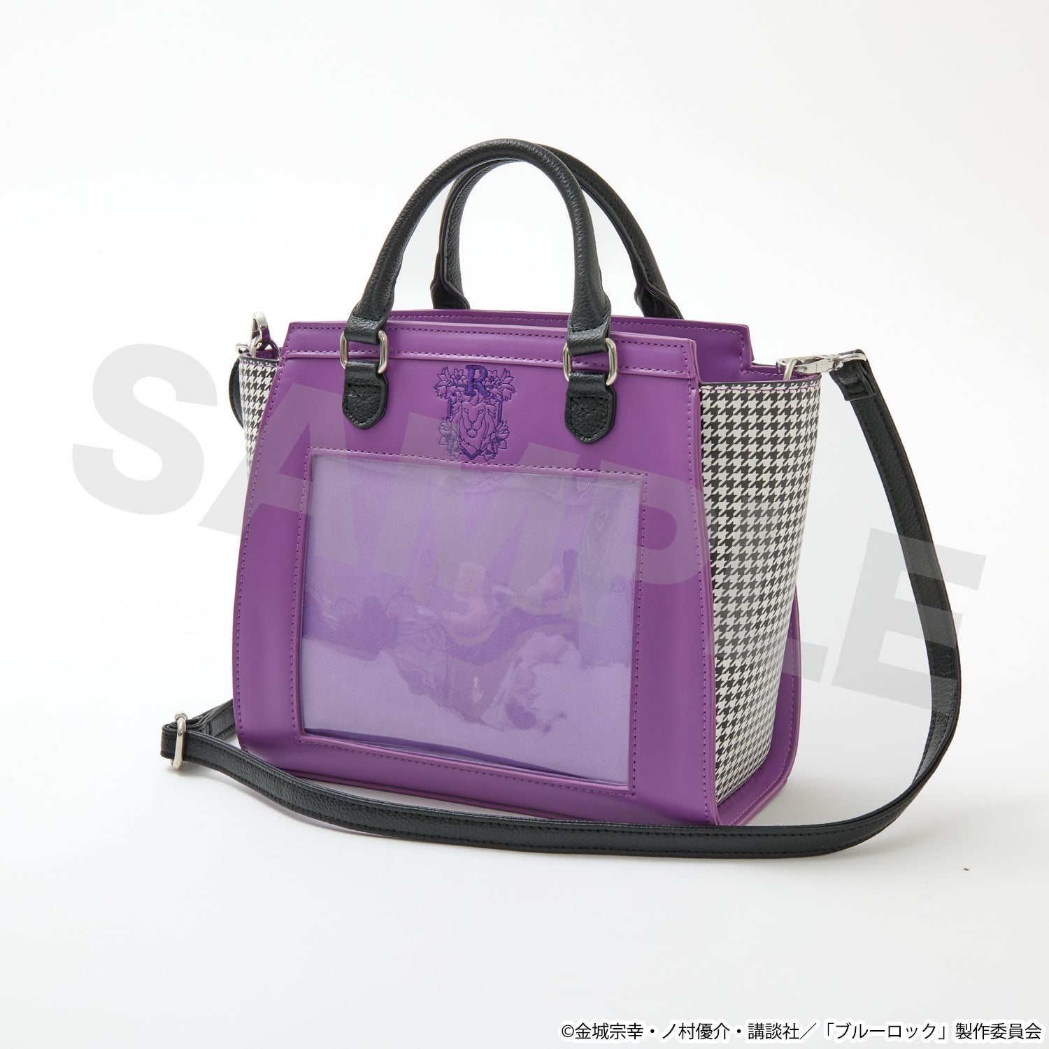 バッグの背面には、縦約130mm×横約160mmのクリア窓のついたポケットがついているので、お好きなグッズを飾ることができます。
