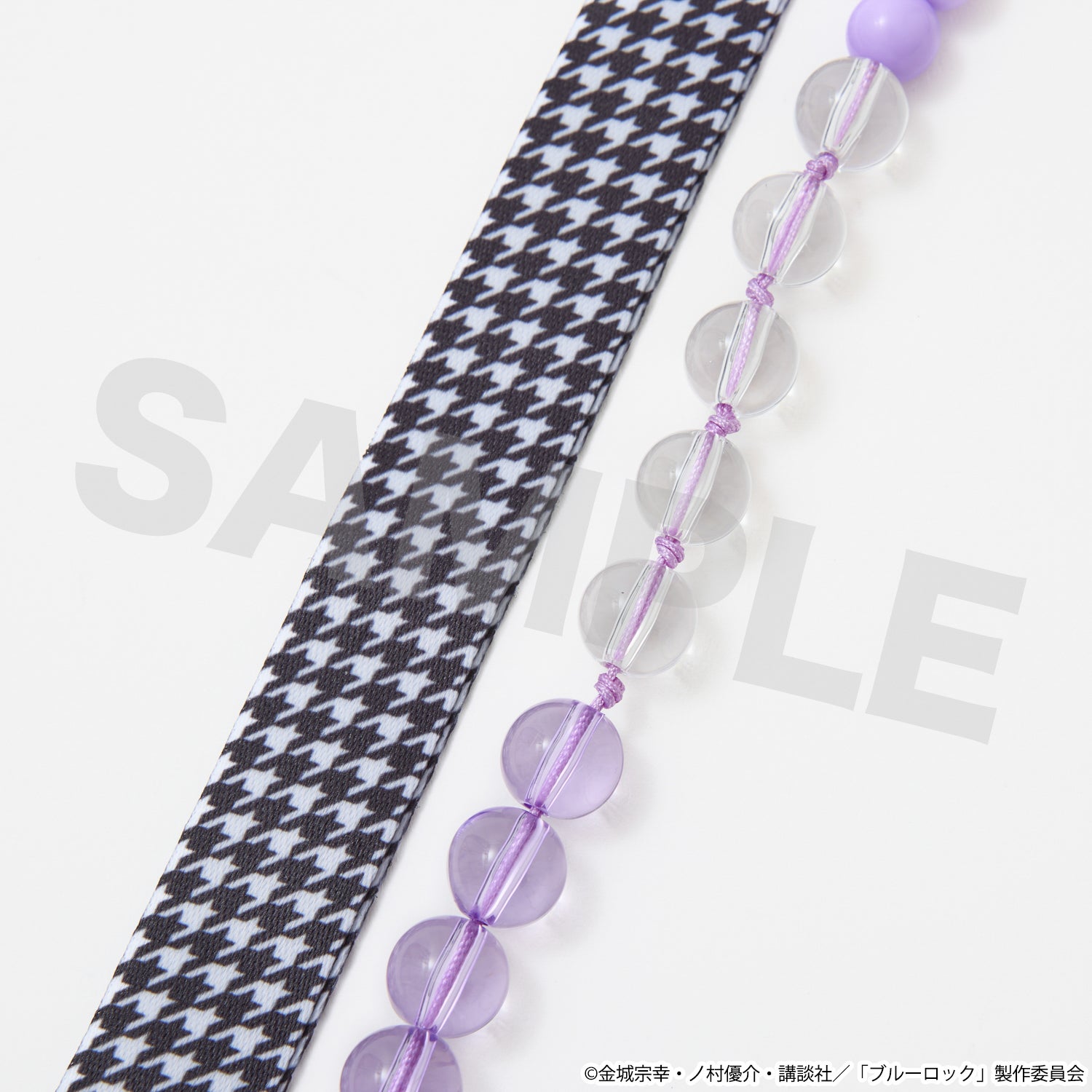 白宝高校の制服をイメージした千鳥格子柄と、イメージカラーのクリアビーズを組み合わせたネックストラップで、普段使いにもぴったりなデザインに仕上げました。