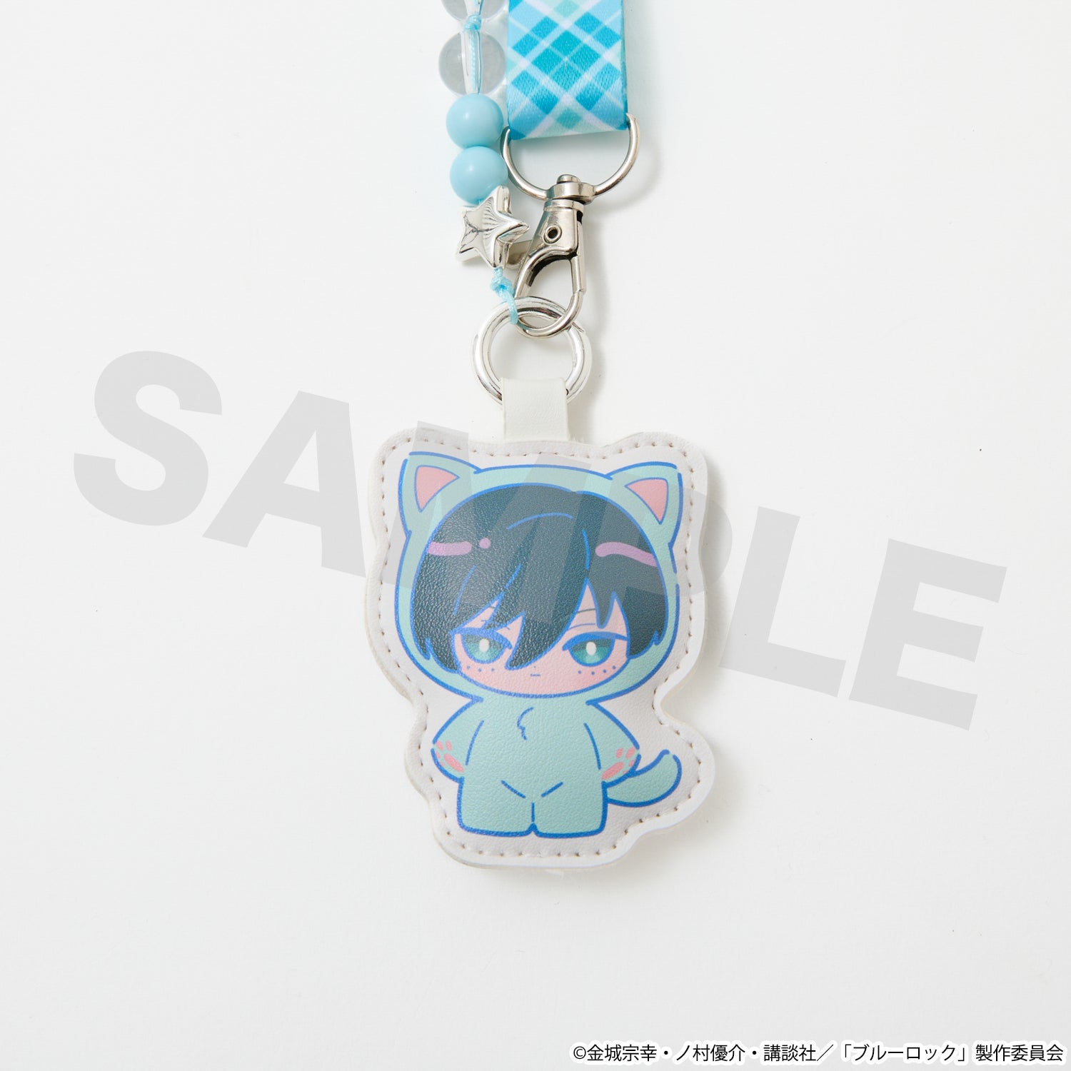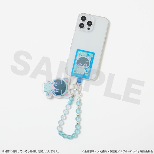 糸師 凛のイメージカラーを取り入れた、スマホストラップ&フォンタブ。