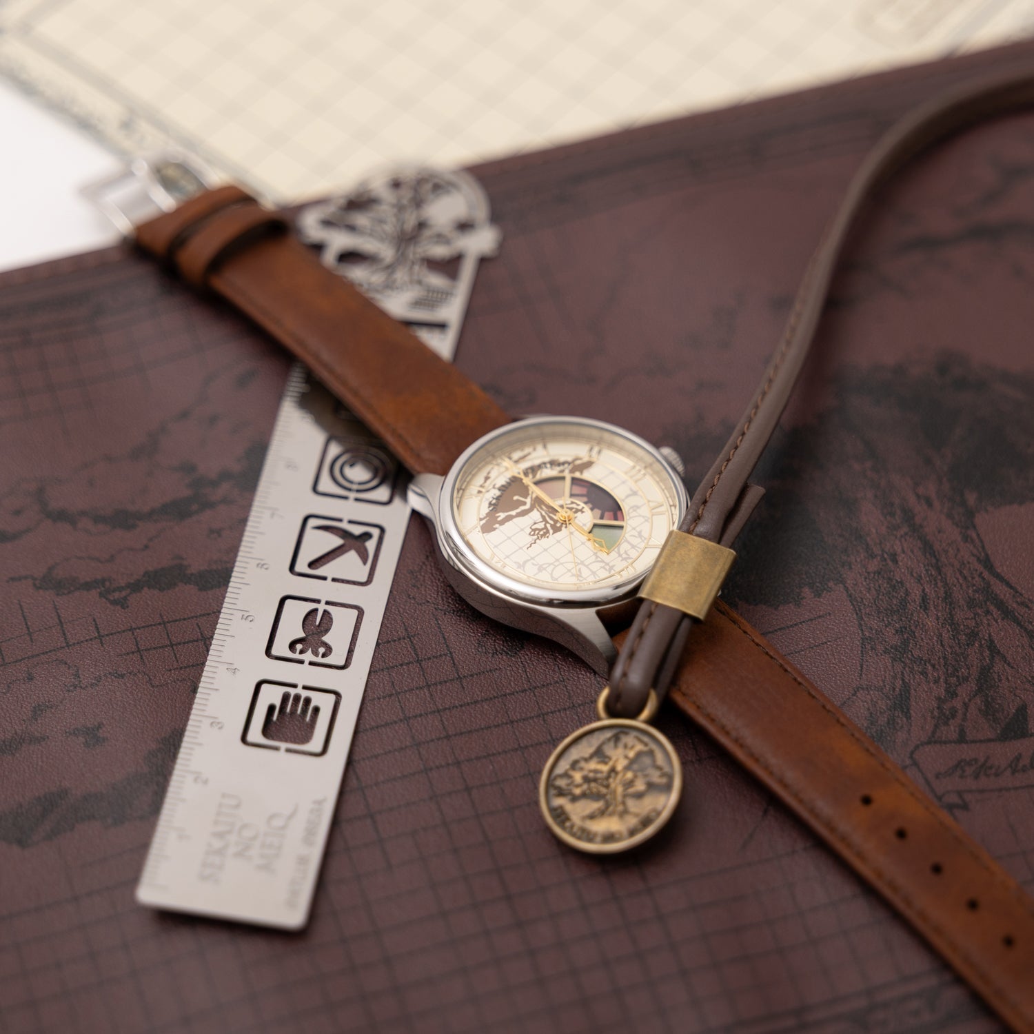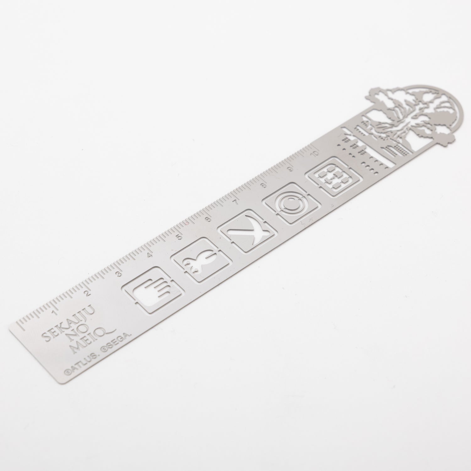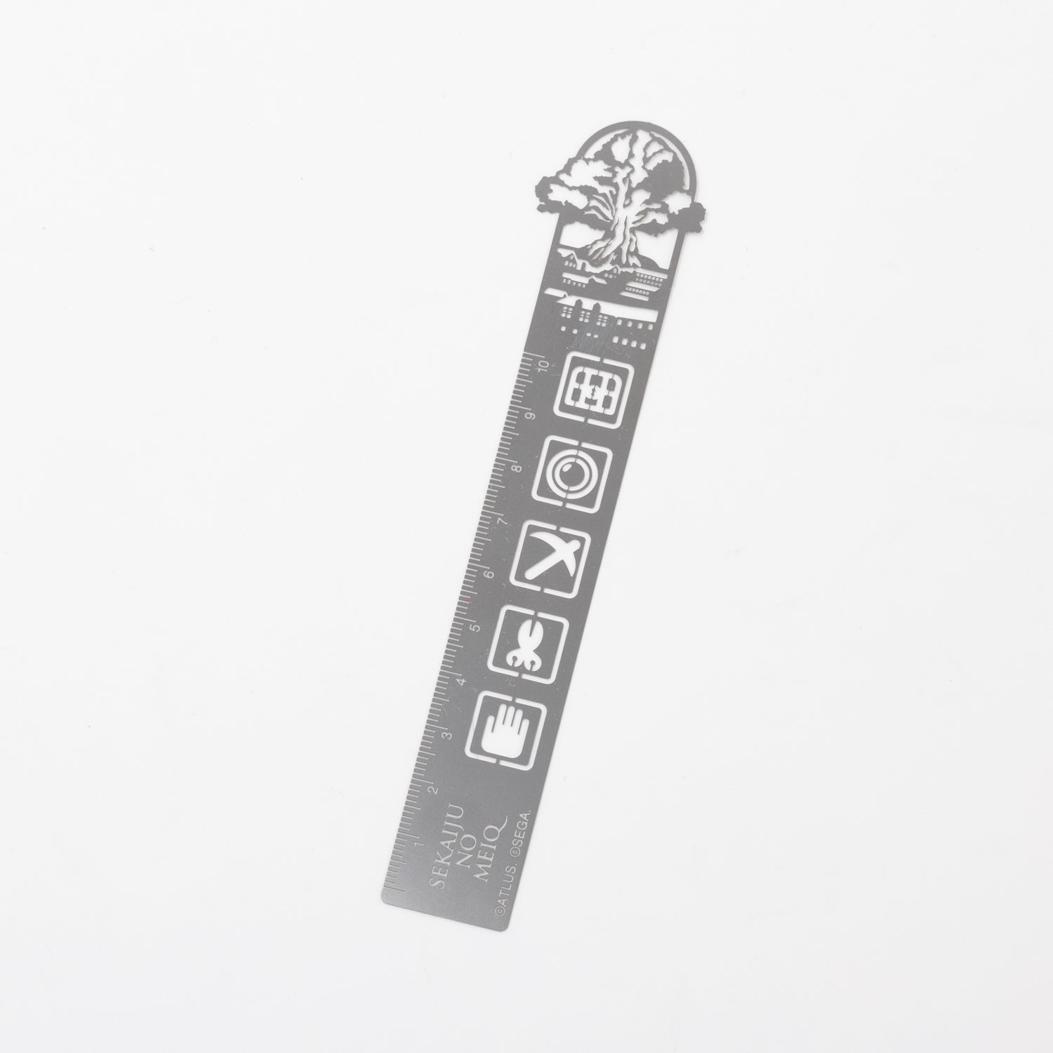 「世界樹」と街並みを繊細に描いた、コンパクトなステンレス定規。