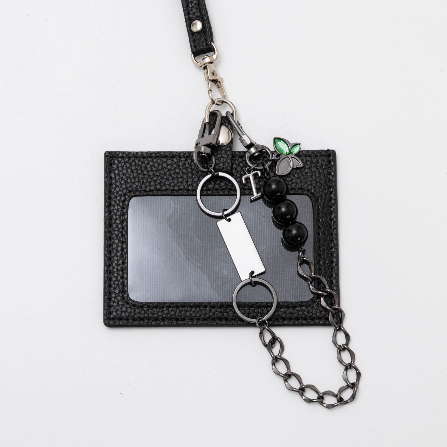 素材/ IDカードケース:合成皮革、ポリエステル、ポリ塩化ビニール ビーズストラップ:鉄、アクリル樹脂、合金 カード:ポリエチレンテレフタレート(PET)