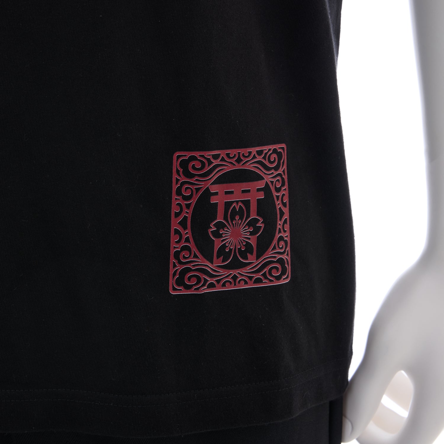 前面の裾部分には、鳥居と桜を組み合わせた博麗神社の印章風プリントをあしらいました。