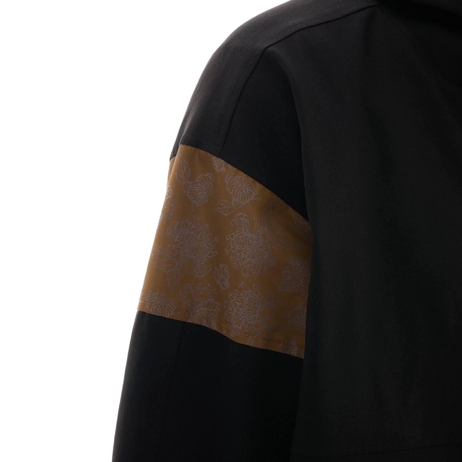 右肩と右ポケットには、篤の着物から銀杏色を配色。着物の文様まで繊細に落とし込みました。