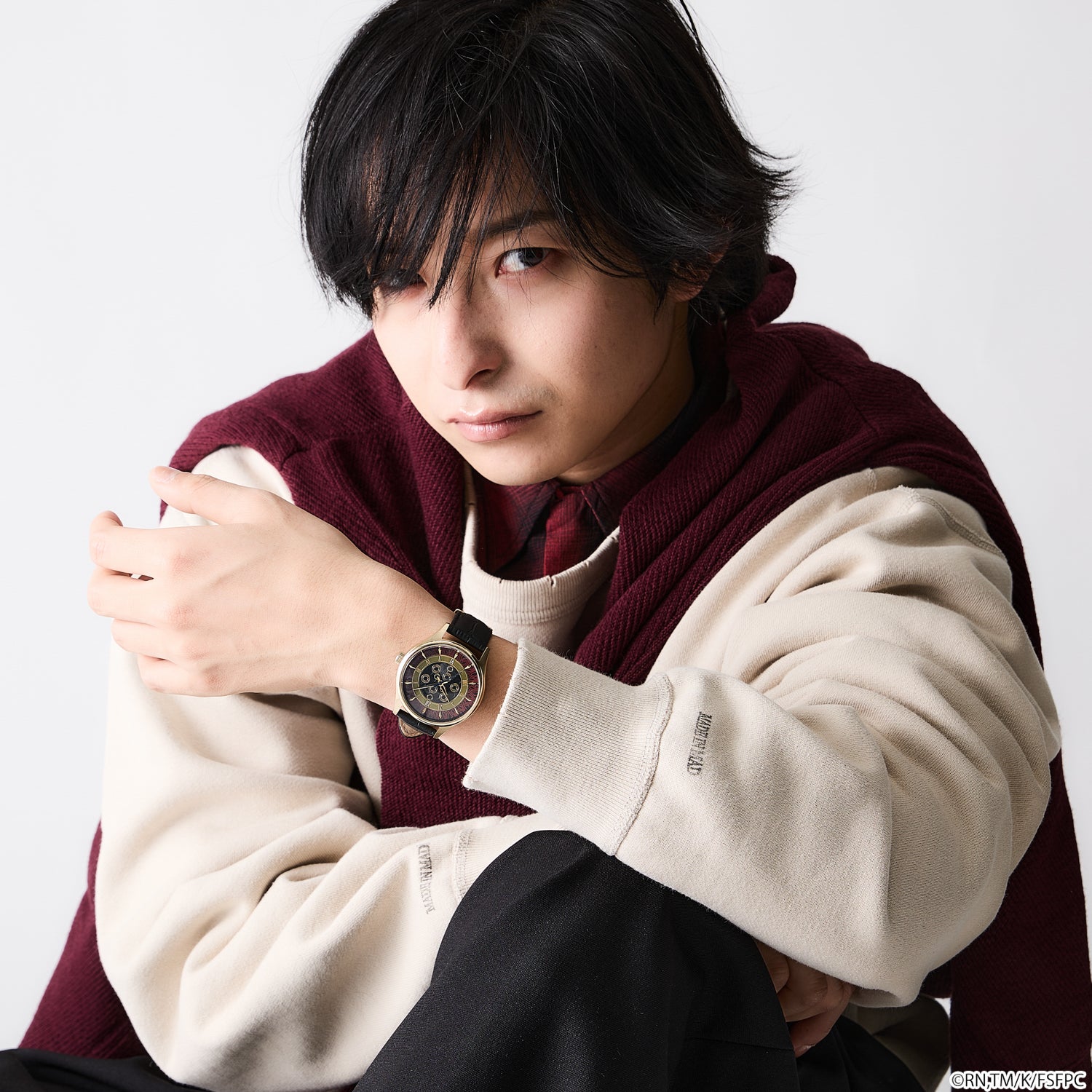 素材/ ケース・裏蓋・バックル・リュウズ:ステンレススチール 文字盤・針:真鍮 風防:ミネラルガラス ベルト:牛革 機械:MIYOTA 2039(日本製)